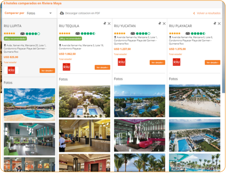 - Comparar hoteles, la primer habitación disponible es la que muestra en el comparativo
