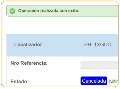 Ahi confirma si la cancelación se realizó con éxito o quedó con algún error el cual deberan comunicarse con el