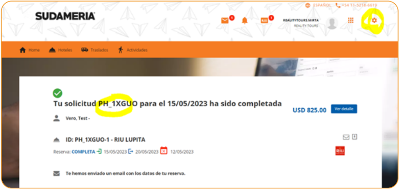 Como dijimos anteriormente cuando se cierra el proceso de reserva nos llega un mail con el PH_ , los datos
