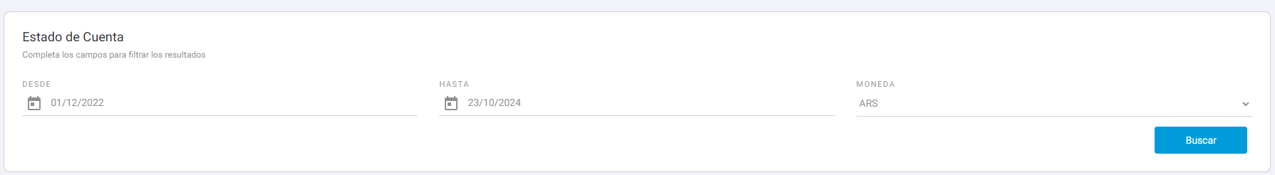 Podrás ver toda la información respecto a tu Estado de Cuenta, filtrar por fecha, file o moneda son algunos de los campos que podes utilizar para optimizar tu busqueda.