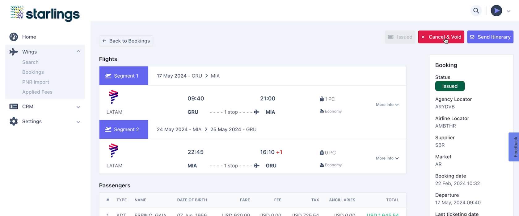 Así se ve cuando se trata de un ticket ya emitido. Si solo se trata de una reserva, dirá Cancel.